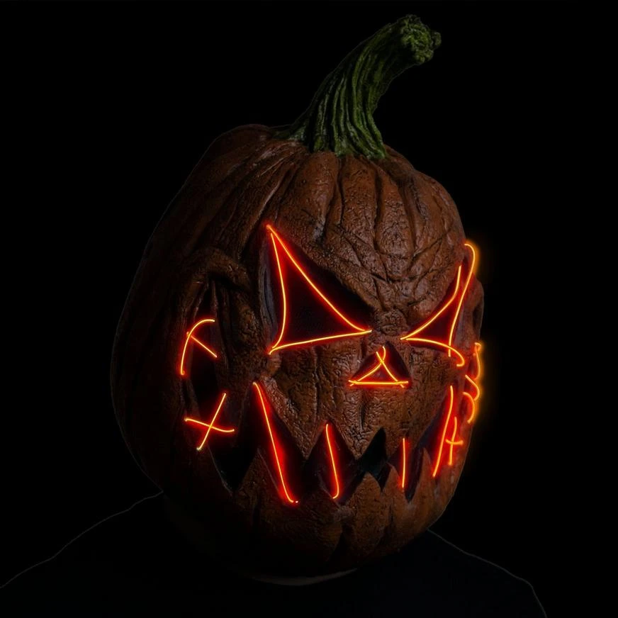 This latex mask is something out of your worst nightmare. The jack-o’-lantern face features rotting flesh and a jagged mouth that’s wired shut. The mask’s realistic textures, menacing expression, and light-up effect are a sure way to add spook to your horror costume.