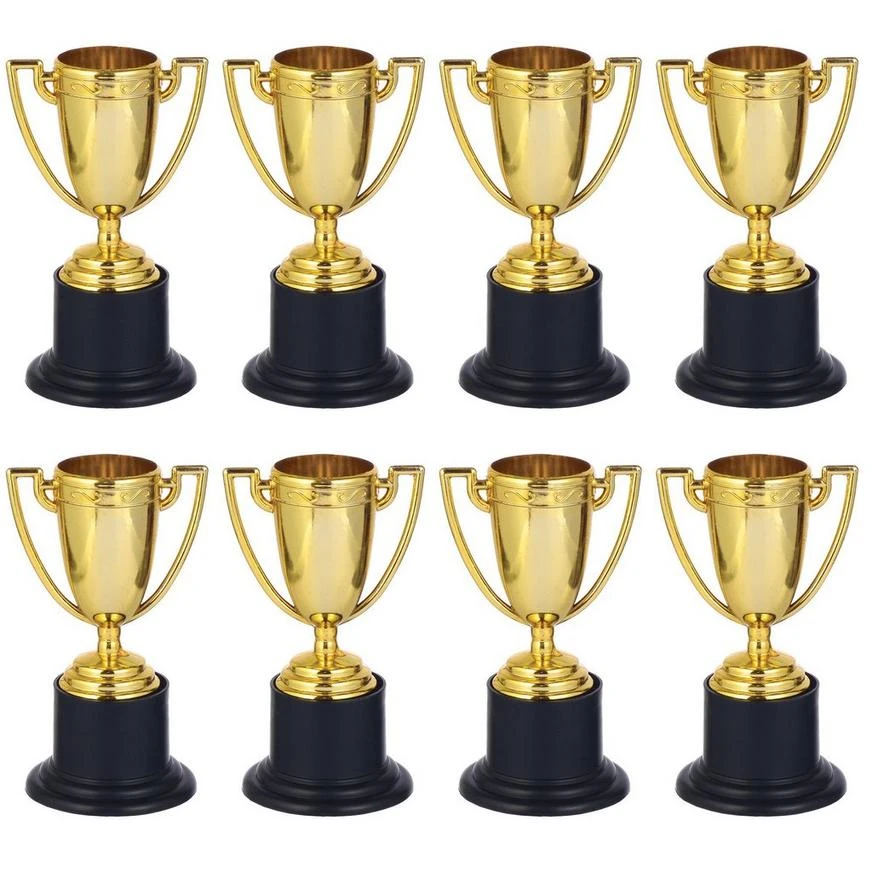 Celebrate any achievement with the Award Trophies! This trophy party favor pack features plastic gold-look trophies with a black plastic base. Hand out as awards, favors, or use as table decorations for your party champions.
