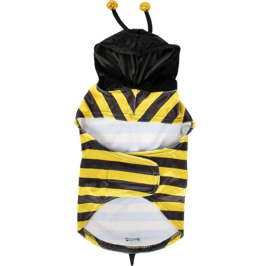 Bark like a dog, sting like a bee! Dress up your fur baby in this adorable bumblebee costume. The yellow and black striped outfit has a hook-and-loop closure at the tummy, sparkly yellow wings on the back, and a black hood with yellow antennae to complete the ensemble.