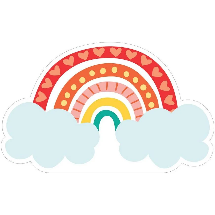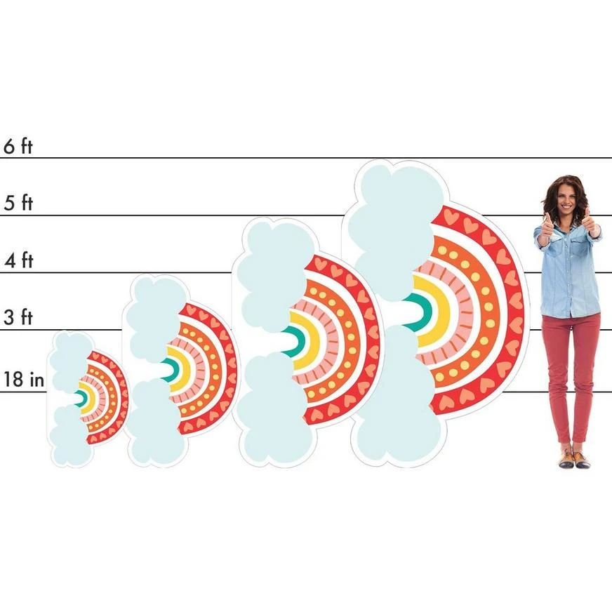 Create a picture-perfect scene by decorating with a Custom Retro Rainbow Cardboard Cutout. It features a rainbow with patterned arches and a fluffy cloud on either end. Use it to accessorize your venue or set it up as a prop in the party photo booth. Then guests can strike a few poses and capture pictures to remember the big event for years to come. Custom Retro Rainbow Cardboard Cutout product details: 4ft tall Cardboard Attached easel stand Assembly required Design on one side only