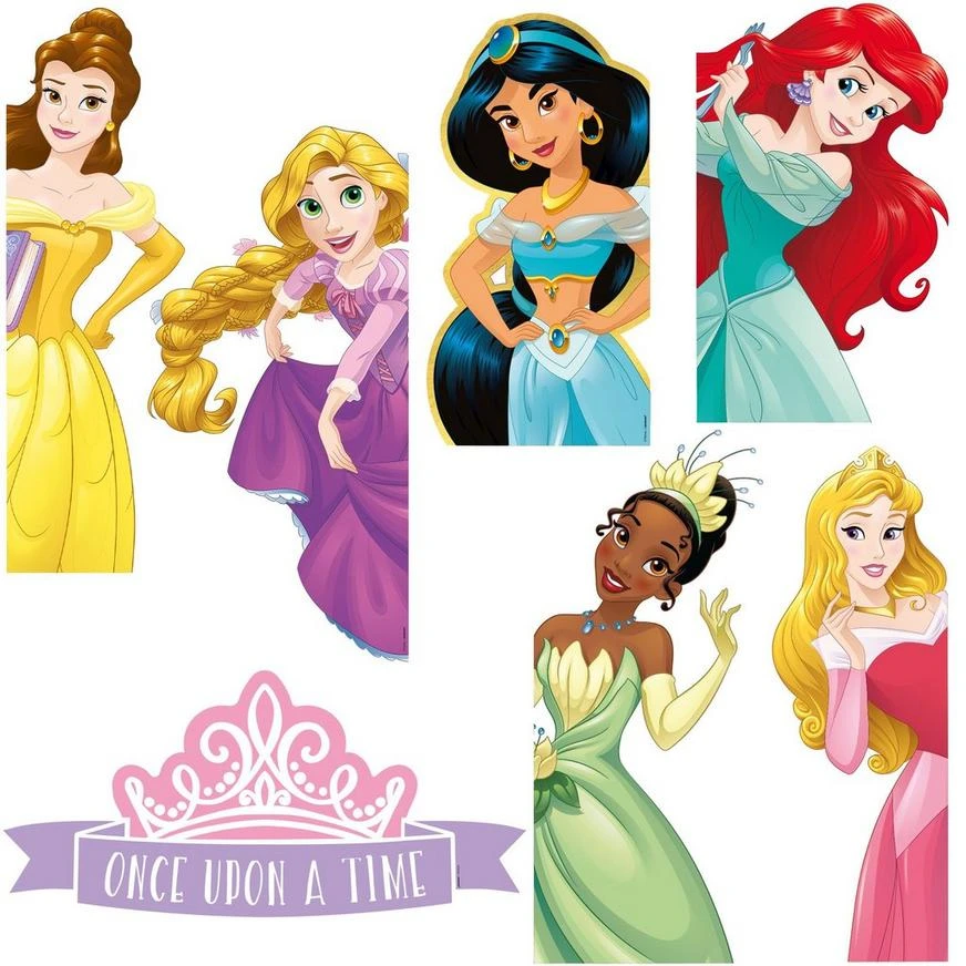 Guests will truly feel like they’re walking into a royal kingdom at this princess party when you apply the Disney Princess door decorating kit to your entrance! This seven-piece kit comes with six princesses designed to peep out from the left and right sides of the doorframe, and a “Once Upon a Time” crown and ribbon to place over the doorway.