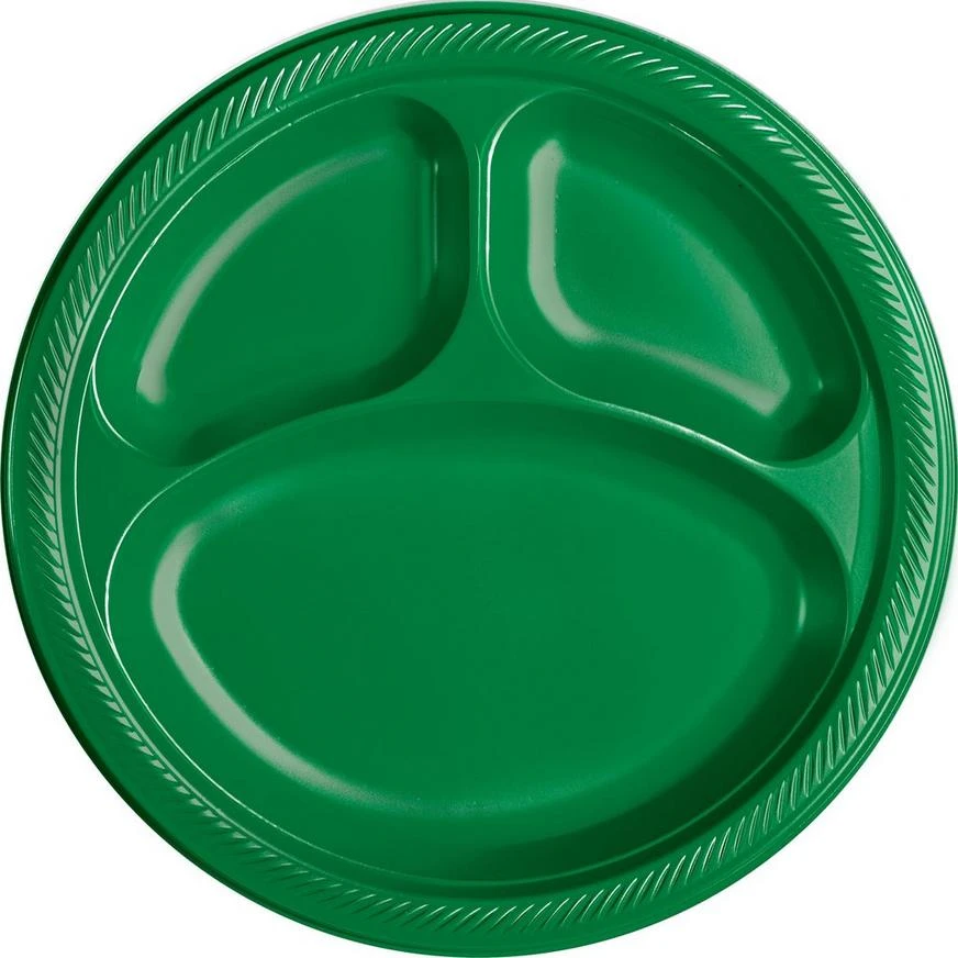 Festive Green Plastic Divided Dinner Plates product details: