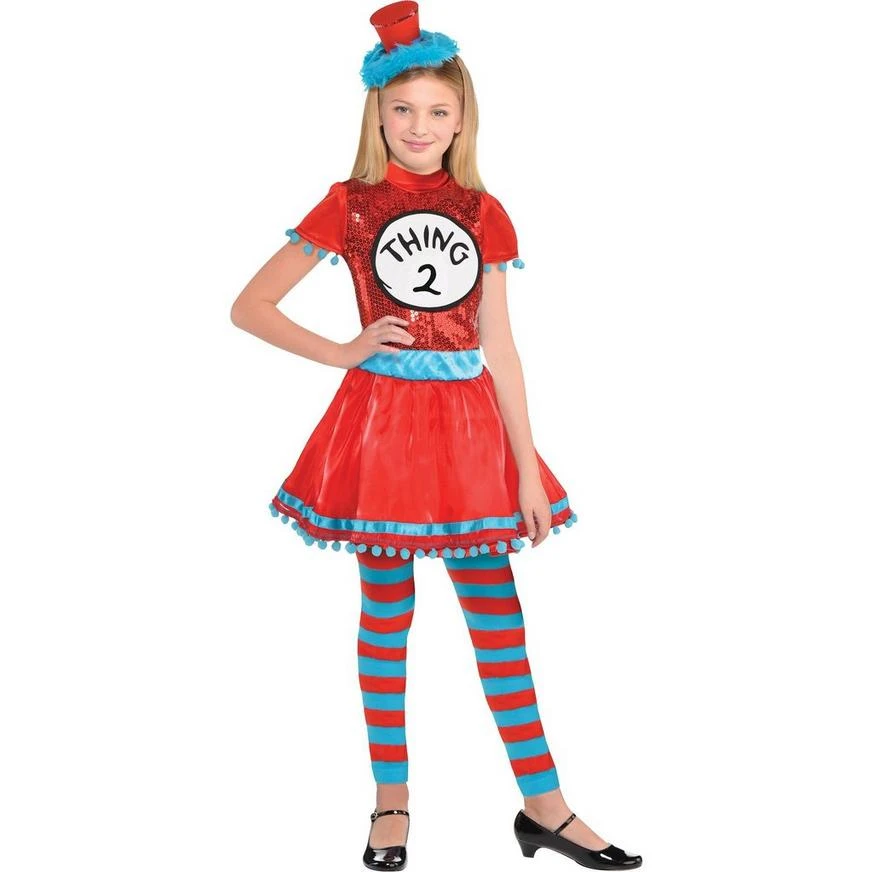 More on Dr. Seuss Girls Thing 1 & Thing 2 Dress Costume: Dress your little one up as the Cat in the Hat’s blue-haired sidekicks with a Dr. Seuss Thing 1 & Thing 2 Dress Costume for girls! This red dress features blue pom-poms and red sequins. Complete with a blue and red hat and tights, this Dr. Seuss costume is perfect for your daughter’s classroom Halloween party! Shoes not included.