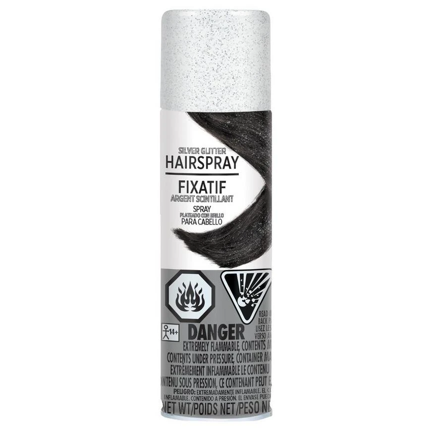 Glam up the party ‘do with Silver Glitter Hair Spray! This Silver Glitter Hair Spray gives your hair a sprinkling of silver glitter along with hair spray hold. Apply to your styled ‘do for an extra touch of glitz and glam on your night out. Easily wash out this non-damaging aerosol hair spray with shampoo and water.