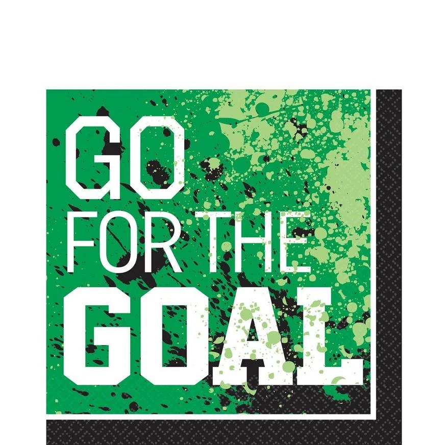 Keep soccer fanatics clean with the Goal Getter Lunch Napkins! These soccer-themed beverage napkins feature a green and black splatter design a “Go For The Goal” headline. These lunch napkins are perfect for keeping your guests tidy while they eat and are great for cleaning up small spills. Complete your soccer-themed party with the Goal Getter Soccer Lunch Napkins.