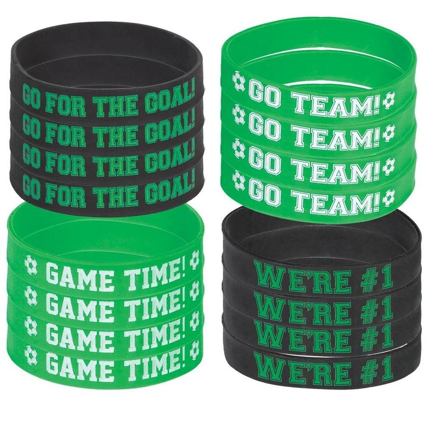 Earn the MVP of party-planning with the Goal Getter Soccer Wristbands for all your party guests! These rubber soccer wristbands feature motivating phrases like “Go Team!” and “Go For The Goal!” Tie wristbands on to invites, pass them out as guests arrive, or add to treat bags. Whether for birthday parties, soccer game days, or sports-themed events, your guests will get a kick out of the Goal Getter Soccer Wristbands!