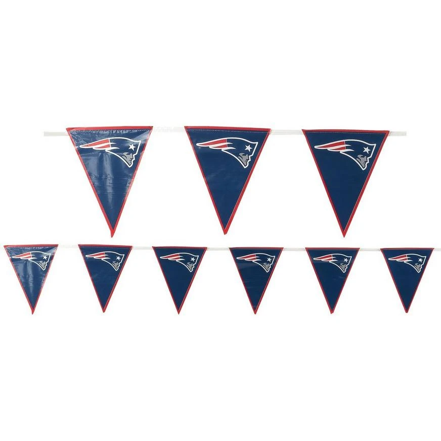 Get your party ready for some football! This New England Patriots Pennant Banner features the logo and colors of your favorite football team printed on one side of each flag. With strings on each side for easy hanging, this officially licensed decoration is perfect for game day or a sports-themed party.