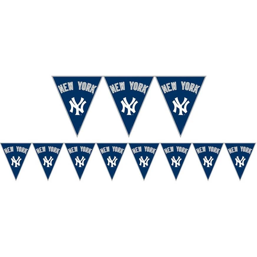 Show your New York pride on game day with a New York Yankees Pennant Banner. Featuring the official Yankees logo on a navy blue background, it’s perfect for baseball-themed parties, too. This pennant banner is made of all-weather plastic with strings on either side for easy hanging.