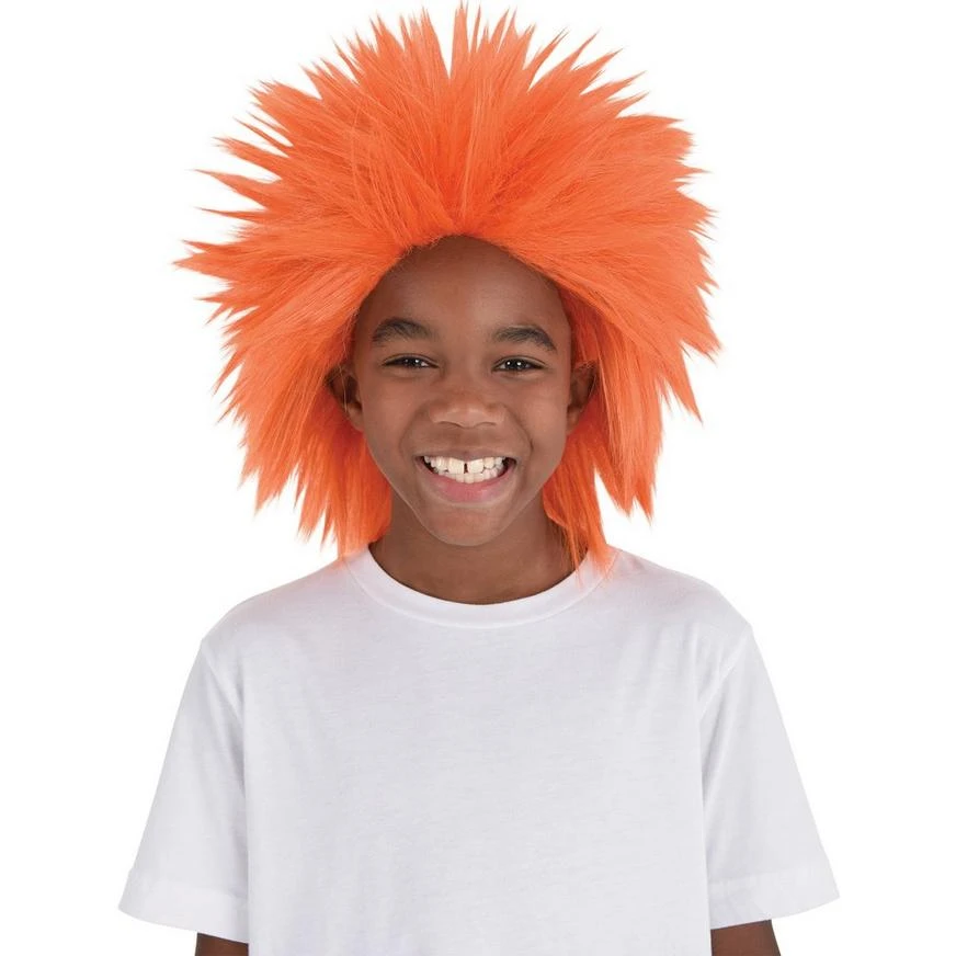 Our Orange Crazy Wig shows how crazy you are for your team! This orange wig has short faux hair that sticks up every which way. A fun way for men, women, and children to show support for their team or school, this crazy hair wig can be paired with a wig cap (sold separately) for a flawless look.