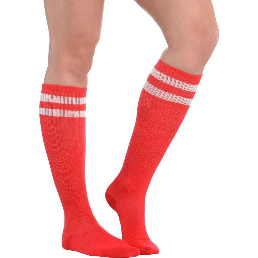 Pull on our Red Stripe Athletic Knee-High Socks for some instant team spirit! These athletic knee-high socks feature allover bright red with two white stripes at the top. They reach all the way up to your knees for a look that’s both sexy and demure!