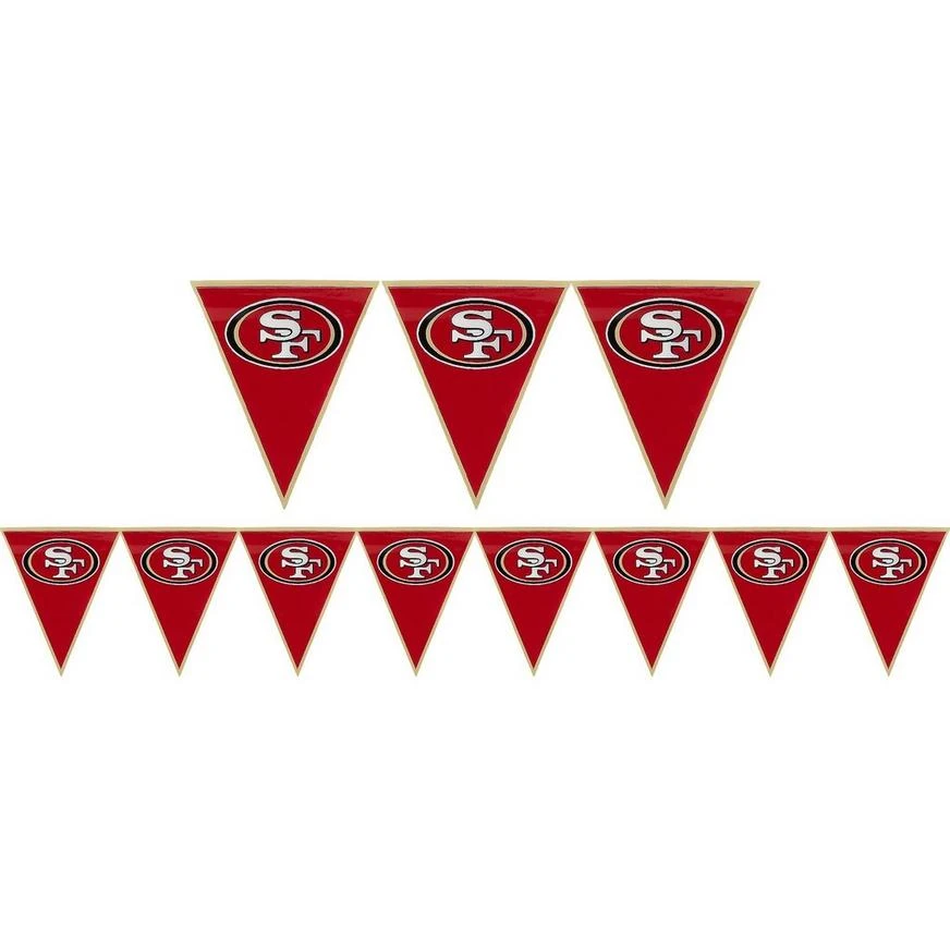 Get your party ready for some football! This San Francisco 49ers Pennant Banner features the logo and colors of your favorite football team printed on one side of each flag. With strings on each side for easy hanging, this officially licensed decoration is perfect for game day or a sports-themed party.