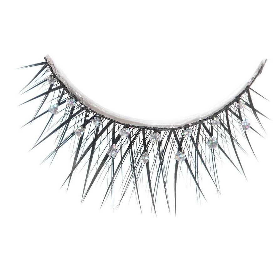 Make your eyes twinkle with Self-Adhesive Rhinestone False Eyelashes! These self-adhesive falsies are long, black lashes intricately crisscrossed and decorated with a sprinkle of tiny rhinestones for some subtle but irresistible sparkle. Rhinestone False Eyelashes can be trimmed to your preferred length and come with instructions for applying and removing.