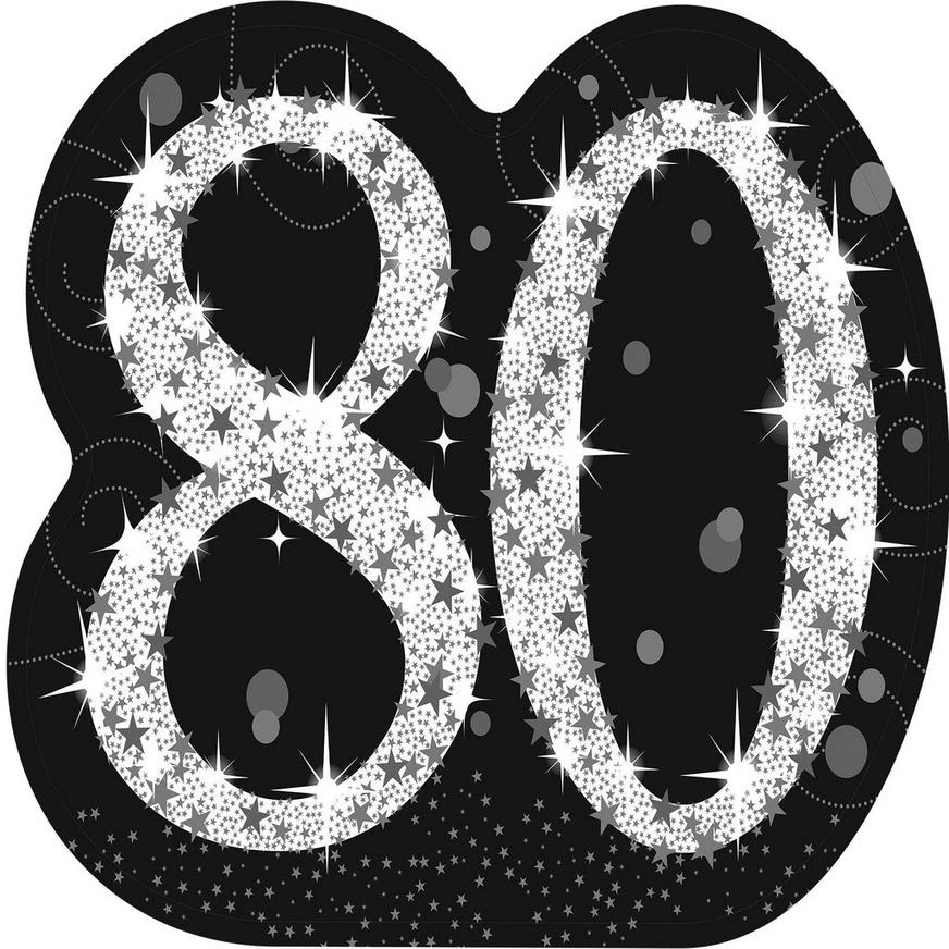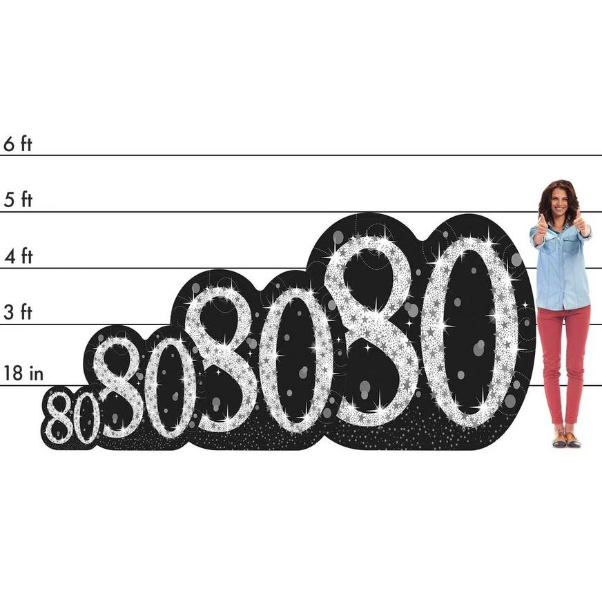 Set the table with a sparkling cardboard cutout for a picture-perfect scene. It is shaped like the number 80 with a confetti background and it has an easel back for support. A themed centerpiece is an easy way to bring your loved one’s millstone birthday party to the next level and it can even be reused as a photo prop for your selfie station! Sparkling Celebration 80 Centerpiece Cardboard Cutout product details: 14in wide x 11in tall Attached easel stand Assembly required Design on one side only